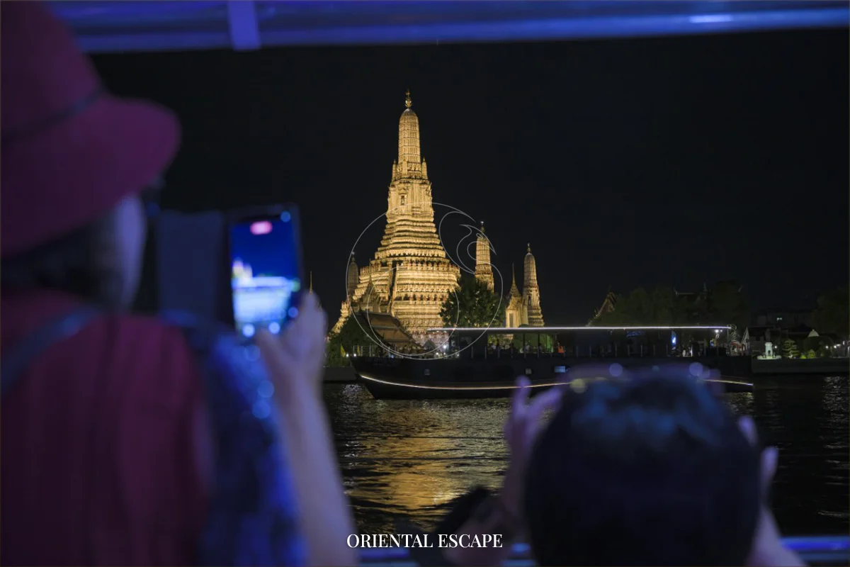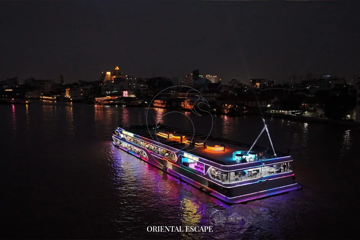 As live music and graceful Thai classical dance performances fill the air, take in the stunning views along the Chao Phraya River — passing iconic landmarks such as Memorial Bridge, The Grand Palace, Wat Arun, Asiatique, River City, and many riverside hotels.