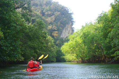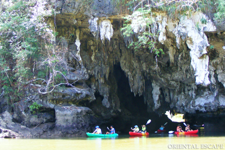 - Pick up from hotel and transfer to Ban Bor-Thor. - Instruction and briefing by local guide. - Kayaking alongside mangroves exploring the sea caves and Thum Lod Tai or Grotto where a tunnel takes you under a limestone mountain. There are many stalactites and stalagmites at the entrance. Paddle to see Tham Phi Hua-Toh, a spacious, airy cave. On the wall of this cave are many prehistoric cave paintings (3000 B.C.) and shells. - Short break with fresh fruit and soft drinks. Transfer to hotel.
