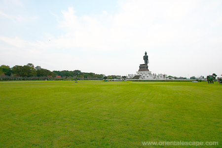Buddhamonthon This is an important religious site built by the government and the people to commemorate the 2500th year of the existence of the Buddha. Accessible by Puttha-Monthon lV Road, it occupies a large area with beautiful landscape and contains many interesting structures. A huge standing Buddha image cast in bronze gold measuring 15.8 metres marks the centre of the area. It is surrounded by Four commemorative sites concerning Lord Buddha's birth, enlightenment, the first preaching sermon, and Nirvana. Other interesting places include a Buddhist museum, a hall keeping marble Pali canon and meditation halls.
