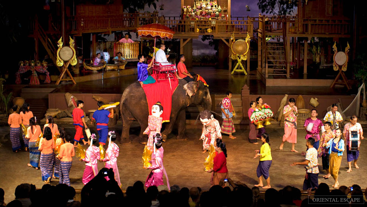 Enjoy the unique and unforgettable experience of the world-renowned Thai Village Cultural Show, featuring an impressive cast of 150 performers, portrays captivating scenes of everyday life in rural Thailand and 'Thai ways' and offers a vivid introduction to: Thai living, the 'cycle of life', time-honoured customs and traditions in an agricultural community in Thailand; the Thai passion for festive fun or 'sanuk' and Thai 'joie de vivre' - the celebration of a good life and good times, as expressed in the folk songs and dance of the four regions of Thailand.