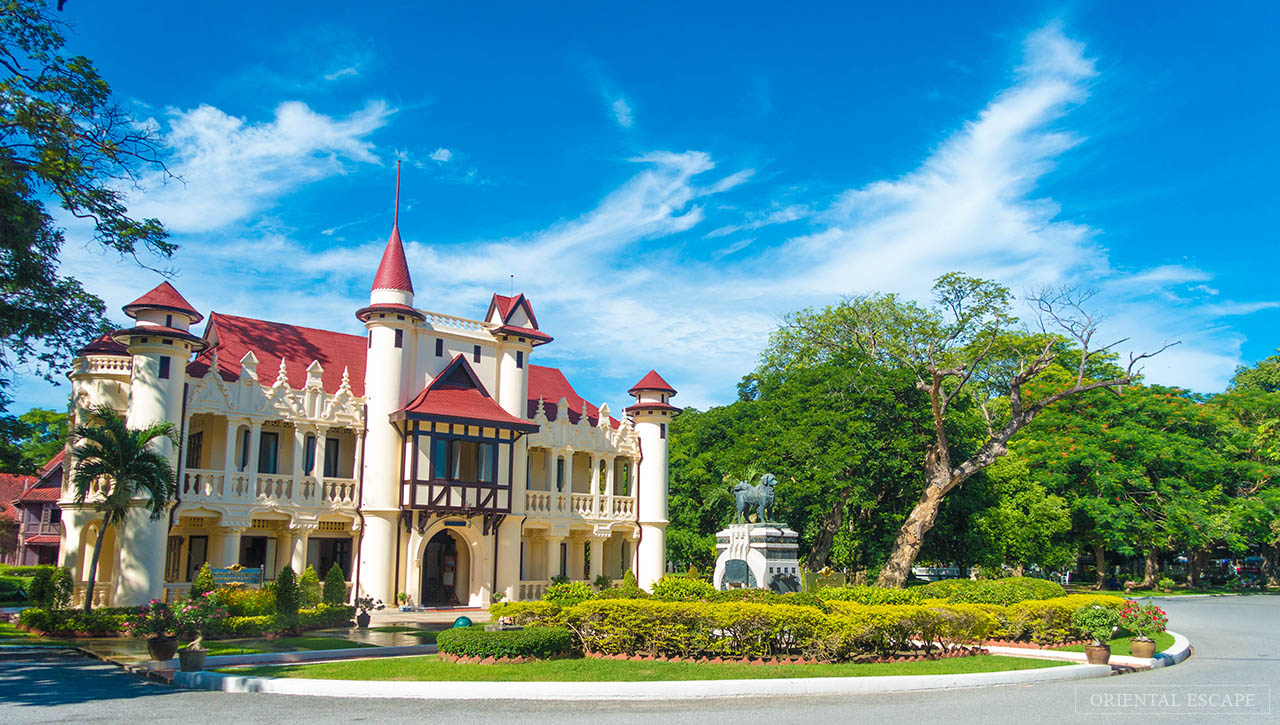 Sanam Chandra Palace This palace, located 2 kms. west of Phra Pathom Chedi, was constructed by the command of King Rama VI in the year 1907 when he was the Crown Prince. The compound occupies an area of 355 acres and houses a group of throne halls and pavilions with an elegant and unusual mixture of classical French, English Tudor and traditional Thai architecture. Most buildings are now used as government offices. The two buildings opened as attractions are Phra Tamnak Chali Mongkhon At, a Western style building with a statue of Ya-Le - the king's pet dog and Phra Tamnak Mari Ratchabanlang where King Rama VI's personal utensils, royal photographs, and writings are exhibited. Nearby a Thai-style house called Tamnak Thap Khwan once served as King Rama VI's temporary residence.