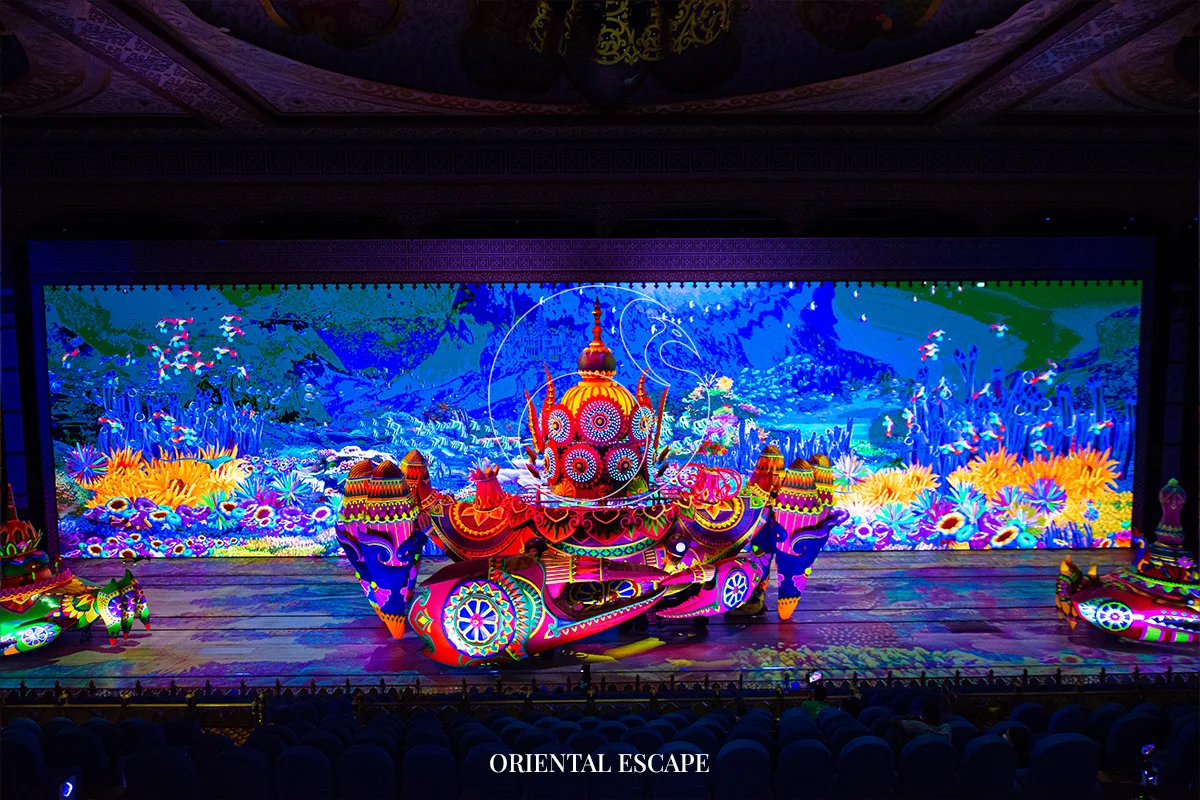 Enter the “River Palace Theatre,” a massive 2,200-seat venue. Photography and video recording are not allowed inside.