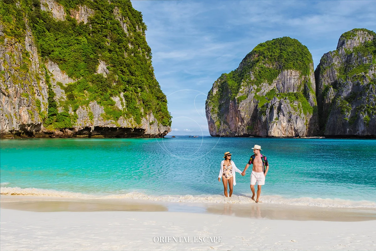 Cruise through the stunning Andaman Sea toward Phi Phi Leh, where you’ll walk along the famous Maya Bay and capture breathtaking photos of its white sands and turquoise waters. Continue to Pileh Lagoon for swimming and snorkeling in an emerald cove surrounded by dramatic limestone cliffs. Optional long-tail boat rides are available for closer access inside the lagoon. You’ll also pass Viking Cave and observe monkeys from the boat near Monkey Bay.