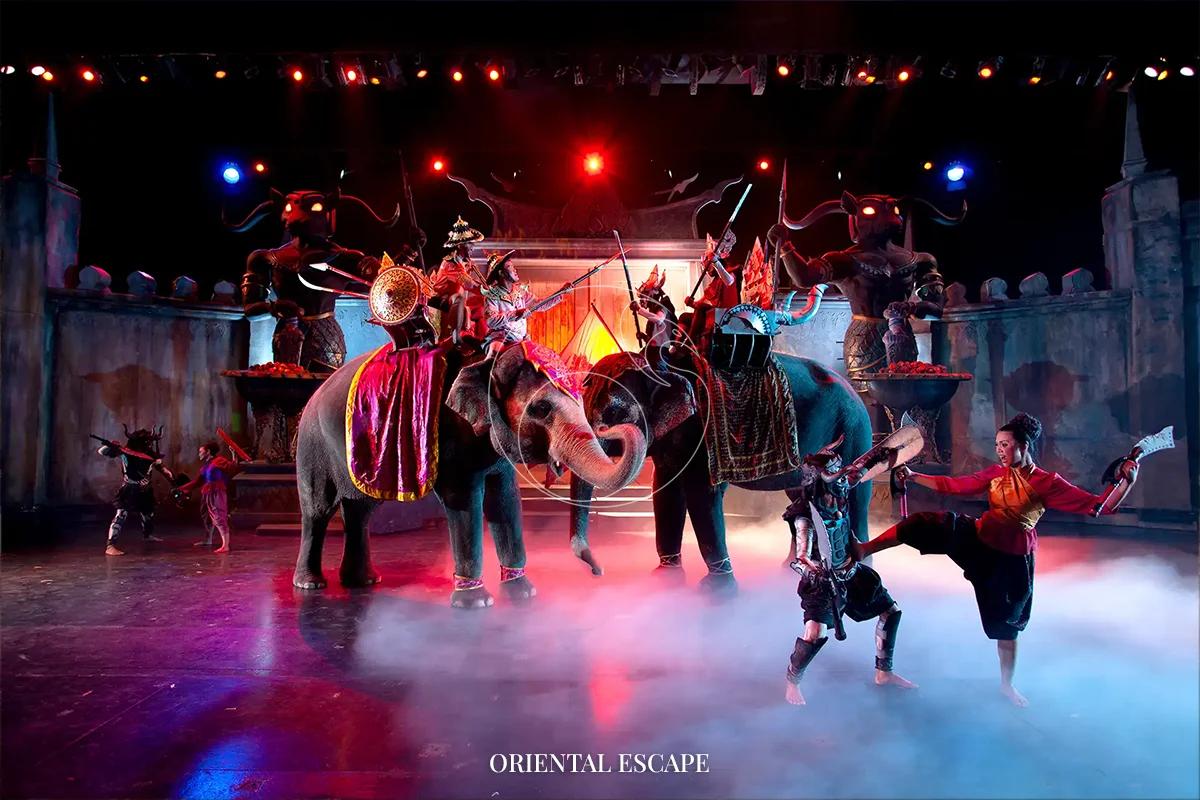 Enjoy a spectacular cultural performance featuring acrobatics, illusions, live animals, choreography, and Thai heritage storytelling.